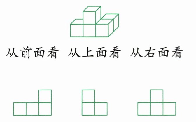 :前面看到的是,右面看到的是,上面看到的是。