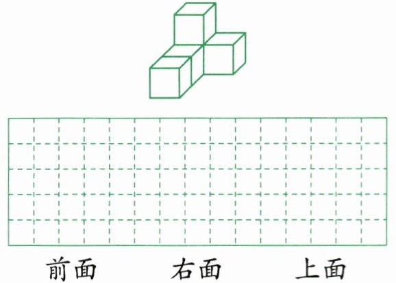 观察下图所示物体,在方格纸上画出从前面、右面和上面看到的图形。