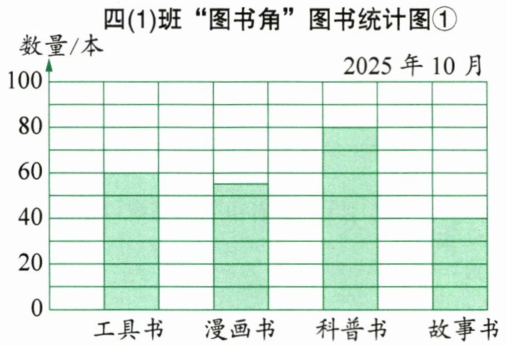 2. 下图是四(1)班“图书角”图书统计情况。请你根据所画出的条形统计图回答下列问题。