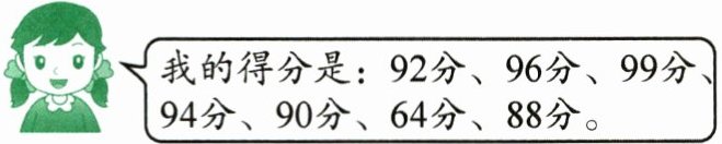 (2) 去掉$64$和$99$后的平均分:$(92 + 96 + 94 + 90 + 88)÷5$