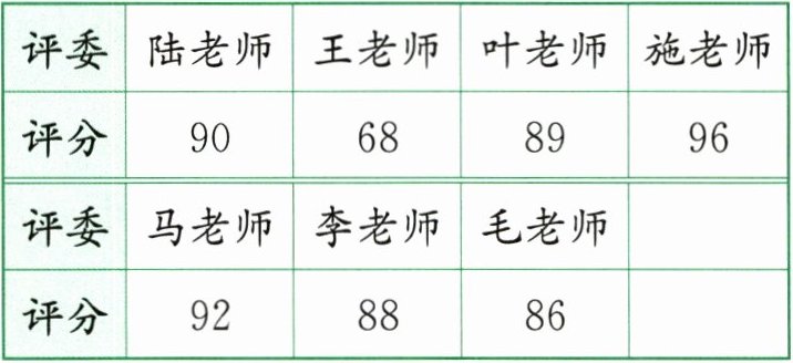 练习3:赵丽参加小学组演讲大赛,7位评委打分情况如下。