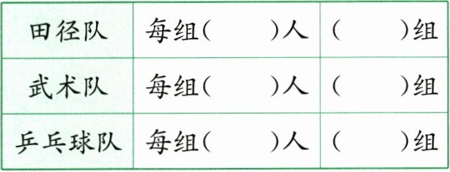 1. 解放路小学有三个运动队。田径队有4个组,乒乓球队有5个组,武术队有3个组。田径队每组16人,乒乓球队每组12人,武术队每组24人。(先列表整理,再解答)