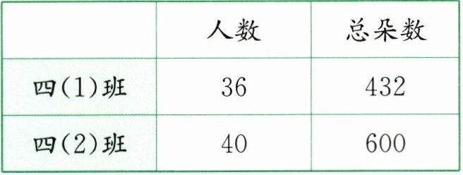 2. 下表是四年级两个班为幼儿园小朋友做红花的情况。