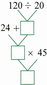 综合算式:$(24 + 120÷20)×45 = 1350$。