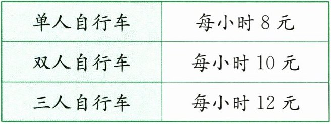 4. 公园里有3种不同类型的自行车可供出租,收费标准如下表。