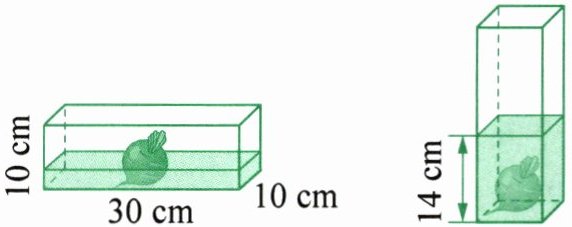 (2) 竖放后容器底面积变为 $10\,cm × 10\,cm = 100\,cm^2$,此时水和萝卜的总体积为 $100 × 14 = 1400\,cm^3$。