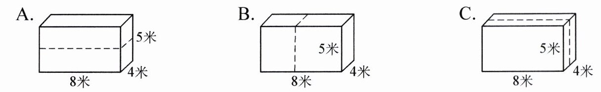 4. 将下面的长方体切开,下面哪种切法会使增加的面积最大?(