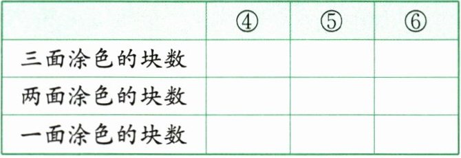 | 两面涂色的块数 | 0 | 12×(3 - 2)=12 | 12×(4 - 2)=24 |