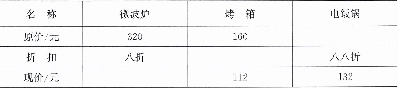 10. 下表是某商场销售3种家用电器的优惠情况,把表格填写完整。