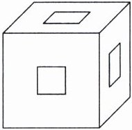 如图所示,一个正方体棱长 6 厘米,在它的 6 个面中间各挖去一个棱长 2 厘米的小正方体。剩下物体的表面积和体积各是多少?