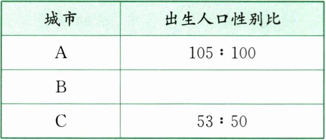 (1) 如果 B 城市这一年出生的男婴数量为 10.4 万,女婴数量为 10 万。请你计算出 B 城市的出生人口性别比并填表。