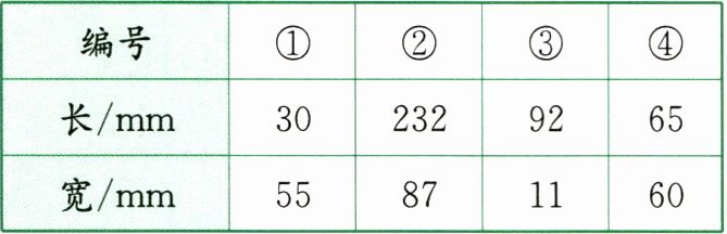 3. 丽丽在同一棵树上采集了若干片树叶,并挑选其中的4片分别量出了长和宽,记录在下表中。