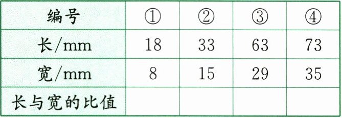 (1) 求出每片树叶长与宽的比值,填在表中。(得数保留一位小数)