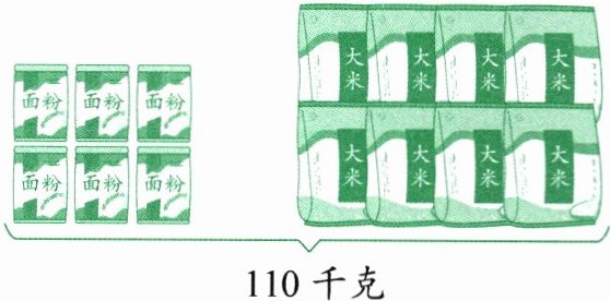 由图可知,面粉有6袋,大米有8袋,总重110千克。