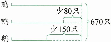 ① 假设鸭、鹅的只数与鸡同样多,三种家禽一共有(