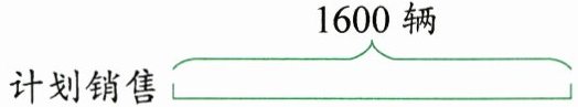 (线段图补充:在计划销售1600辆的线段右侧,画一条稍长的线段表示实际销售,多出的部分标注“?%”,实际销售线段下方标注1800辆)