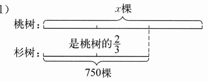 解:设桃树有$x$棵,则杉树为$\frac{2}{3}x$棵。