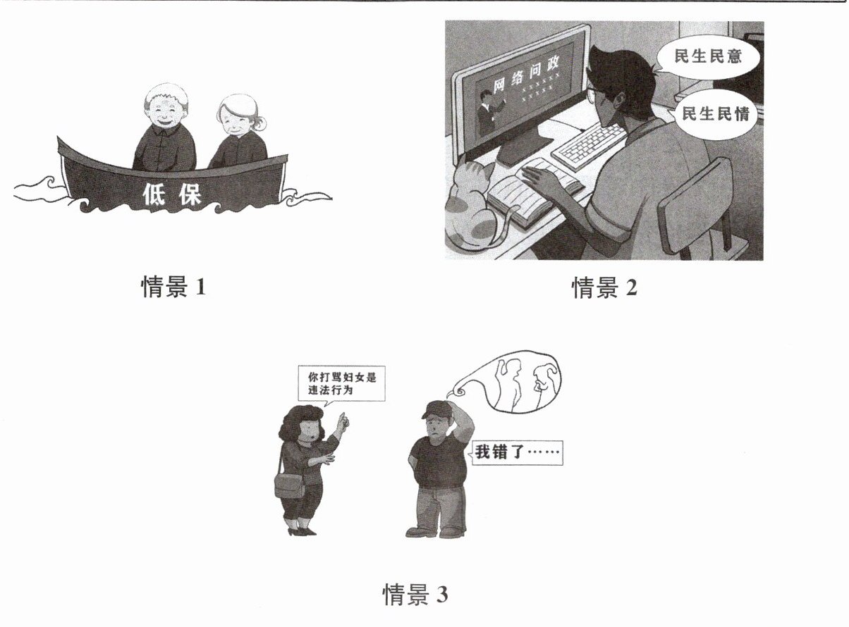 (3)①实施义务教育制度,保障公民受教育权。②建立基本医疗保障制度,保障公民健康权利。③推行精准扶贫政策,保障公民基本生活水准权利。④制定《老年人权益保障法》,保障老年人权利。⑤设立最低生活保障制度,保障公民社会保障权利。