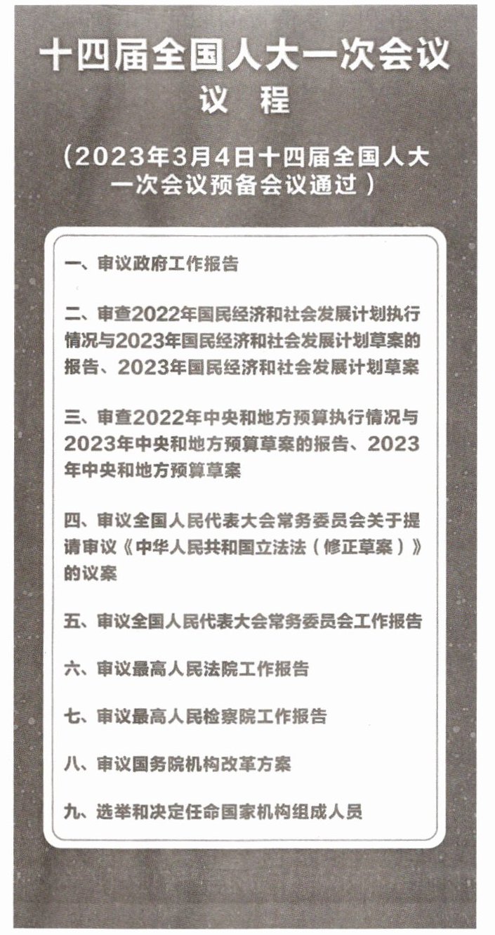 二、决定权(审查2022年国民经济和社会发展计划执行情况与2023年计划草案、2022年中央和地方预算执行情况与2023年预算草案、审议国务院机构改革方案)