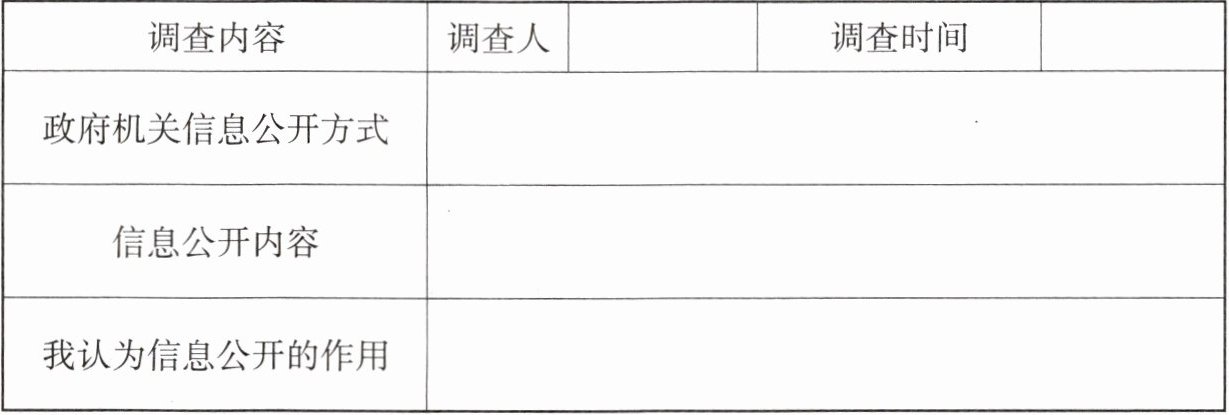 |政府机关信息公开方式|政务公开栏、政府网站、新闻发布会、政务新媒体(如微信公众号、微博)|(考生可填写实际调查日期,如2023年10月26日)|