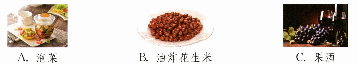A. 泡菜 B. 油炸花生米 C. 果酒