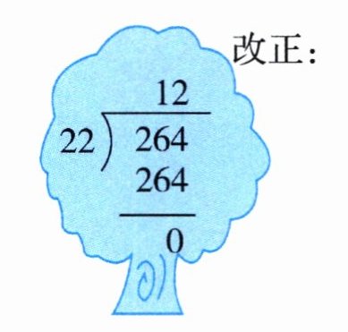 错误:商的计算过程未分步呈现,直接用除数乘商的积(22×12=264)一次性减去,未体现十位和个位商的分步计算。