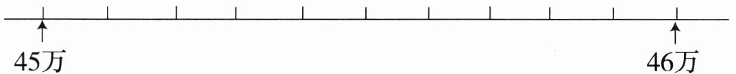 (2)依据我国现行的标准,中型出租客运汽车在行驶里程达到 50 万千米时就要报废。一辆出租车已经行驶了 456078 千米,请你在数线图上标一标,再四舍五入到万位。