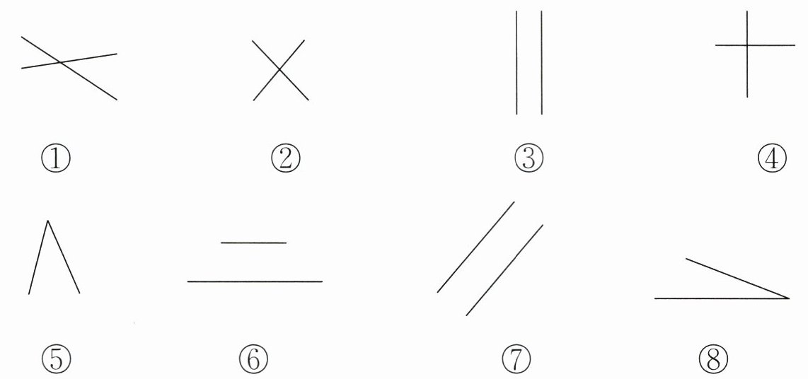 1. 下面几组线中,哪几组是相交的?哪几组是互相平行的?