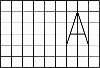 将字母 A 的各关键点向左平移 4 格,得到新关键点,连接新关键点得到平移后的字母 A。