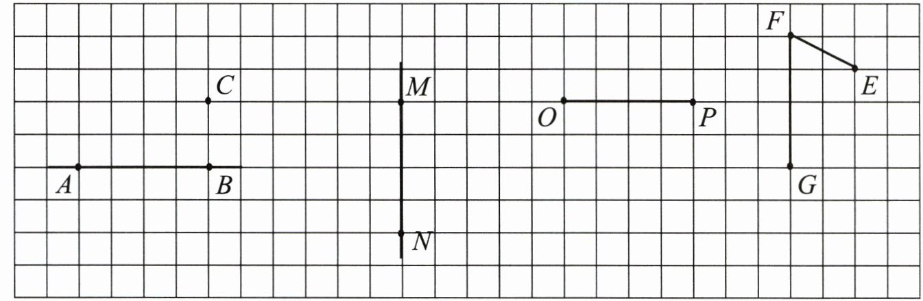 从$ O$ 点和$ P$ 点分别向上(或向下)$ 2$ 格处画水平线,长度与$ OP$ 相同。