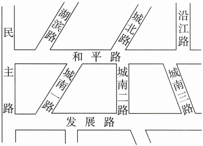 9. 在下图中,哪两条街道是互相平行的?哪两条街道是互相垂直的?请各写出三组。