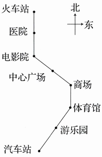 (2)从商场向西北方向行驶2站到达电影院,再向北行驶2站到达火车站。