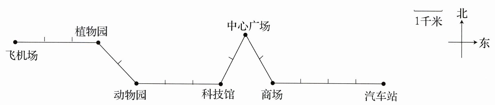1. 从飞机场出发,向东行驶2千米到达植物园;