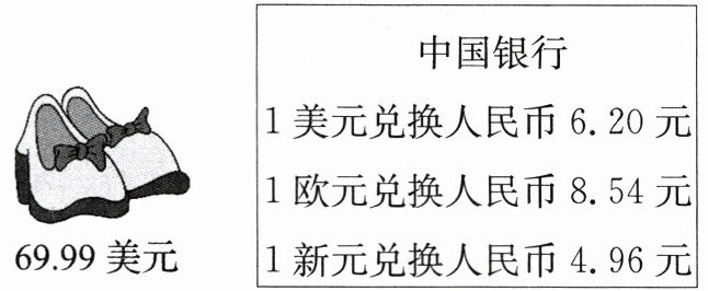 (1)妈妈准备在美国一家购物网站上买这双皮鞋,折合人民币约多少元?