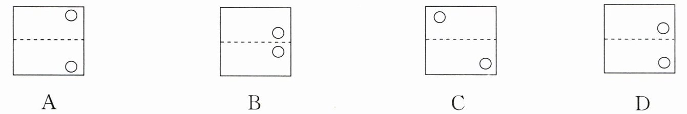 7. 照左图,在一张对折了的纸上打一个小圆孔,展开后的样子是(