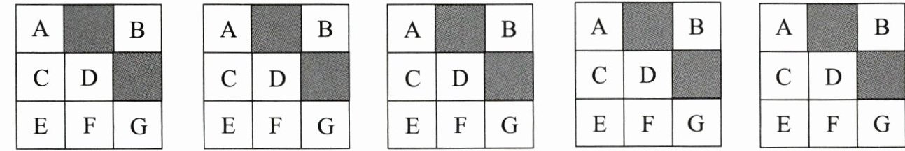 2. 涂黑F(第三行第二列),图形关于水平对称轴对称。