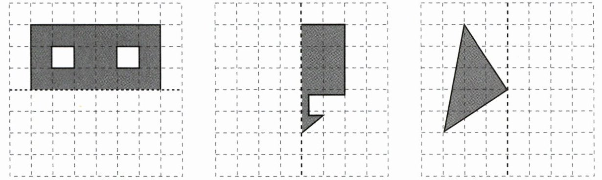 (在方格图中,利用对称轴是虚线,通过数方格的方式找到各点对称点并画出)。