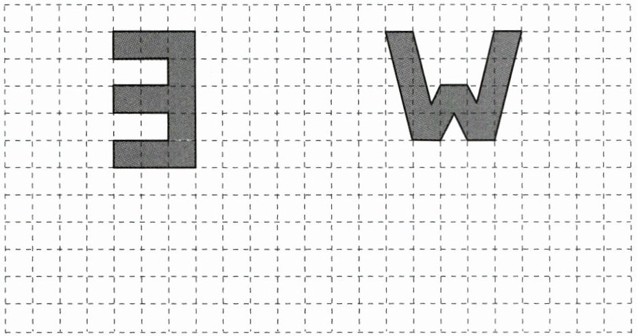 6. 看一看,想一想,如何把“$ \boldsymbol{\exists} $”变成“$ \boldsymbol{E} $”,“$ \boldsymbol{W} $”变成“$ \boldsymbol{M} $”?在图上画一画。