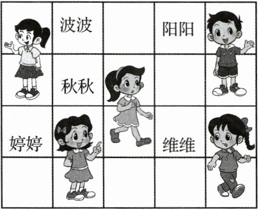 最终,波波、阳阳、秋秋、维维、婷婷(或按其他合理顺序)在同一行。