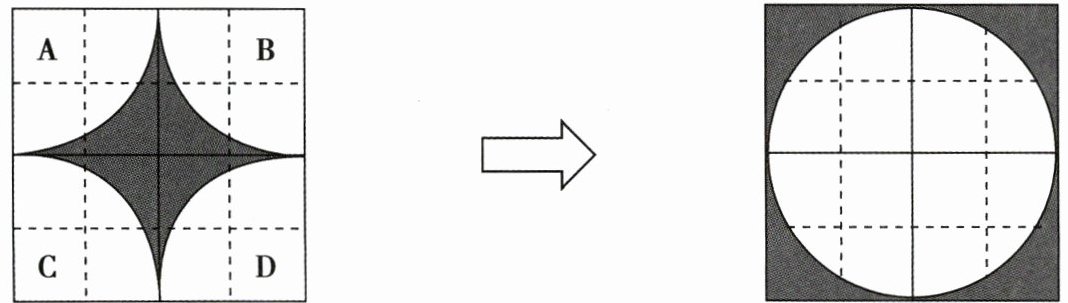 9. 想一想:下面左边图形的四个部分怎样平移可以得到下面右边的图形。