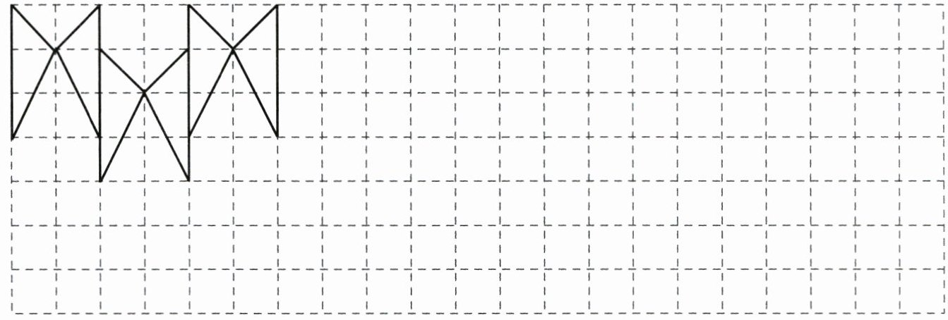 在最后一个峰之后,隔4个虚线方格,画出下一个峰,峰由两条交叉线构成,形成相同的形状,然后涂上颜色。