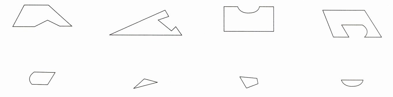 5. 下面两行图形,哪两个可以拼成规则图形?用线连起来。
