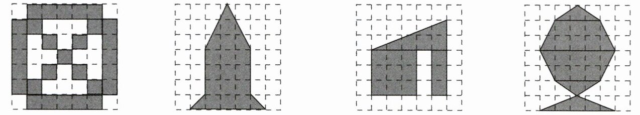 6. 写出下面各图中阴影部分的面积。(每个小方格的面积表示$1cm^{2}$)