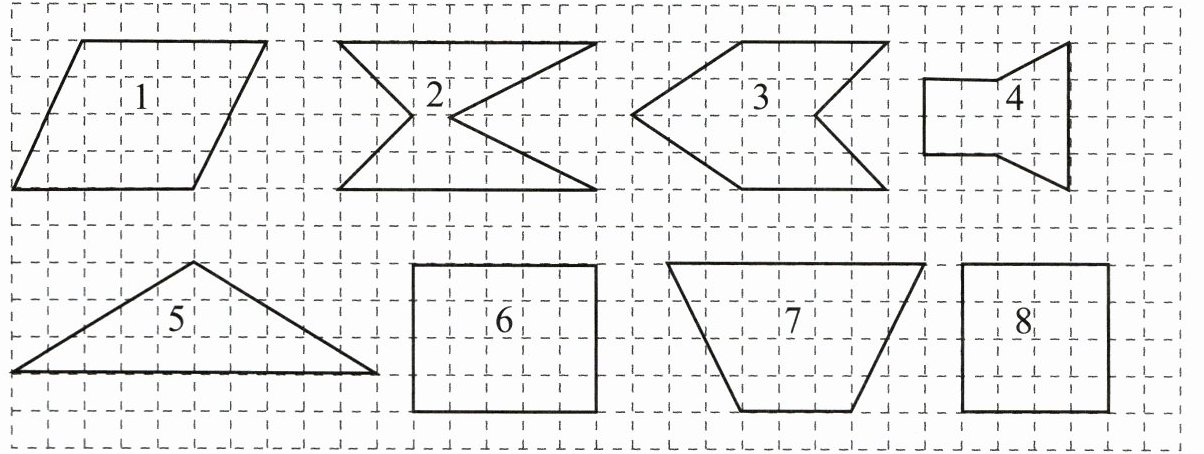 4. 下面哪些图形的面积和图 1 一样大?把你的想法在图中画一画,比一比。