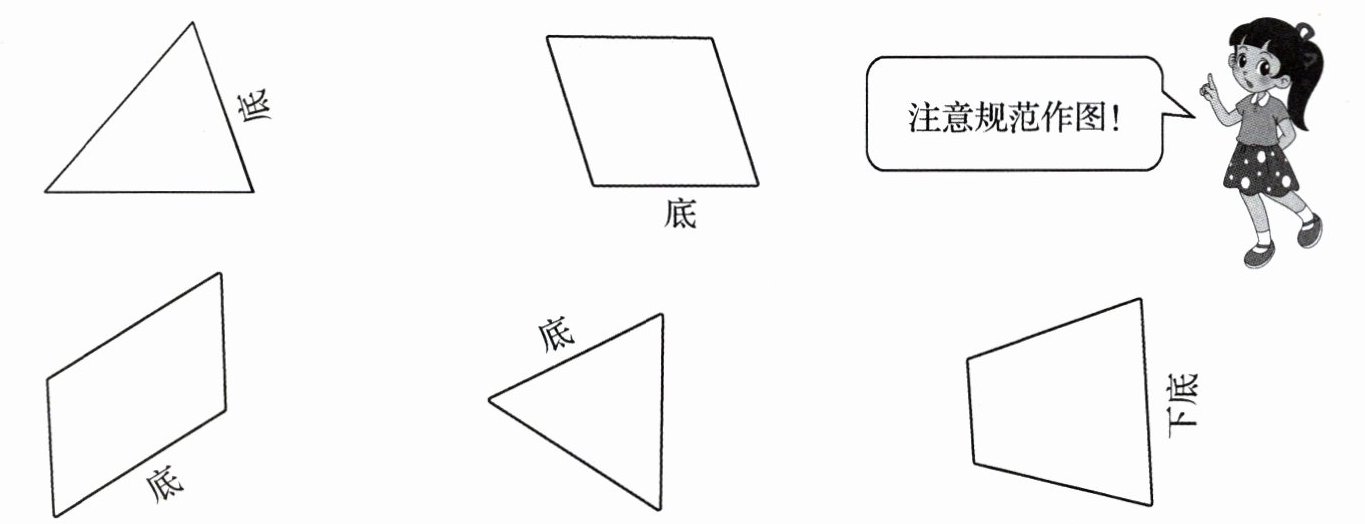 (由于这里是文字描述,实际作答时需用直尺和三角板规范画出各图形给定底边上的垂线段来表示高。)