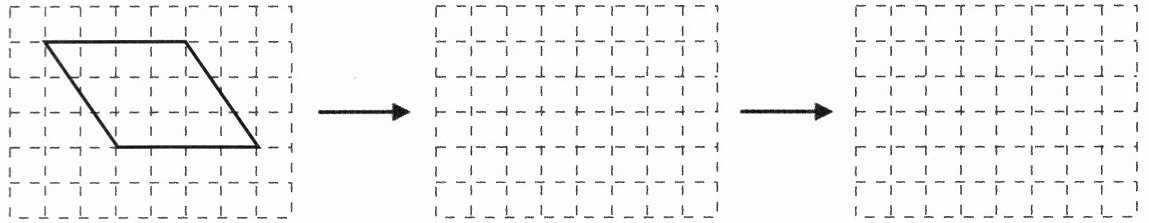 )形,把转化的过程在下面的方格纸上画一画。(2)观察平行四边形和拼成的长方形,指着图说一说。