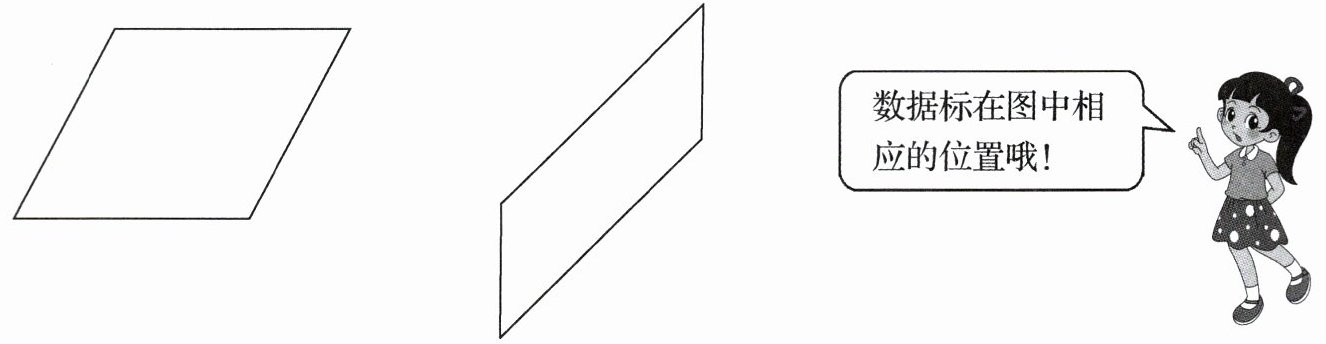 4. 先测量并标出所需数据,再计算下面各平行四边形的面积。(单位:cm)