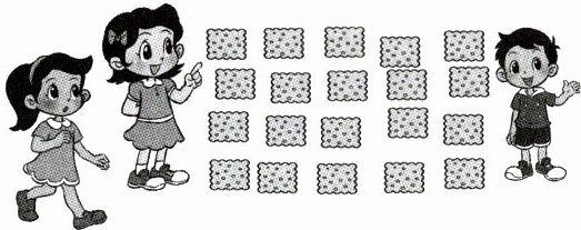 9. 如下图,每人可以分到多少块饼干?如果再来3个小朋友呢,每人分多少块?