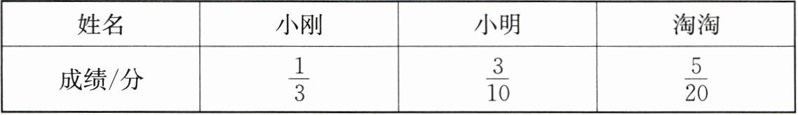 8.小刚:$\frac{1}{3}=\frac{20}{60}$(分) 小明:$\frac{3}{10}=\frac{18}{60}$(分)淘淘:$\frac{5}{20}=\frac{15}{60}$(分)淘淘用的时间最短,所以淘淘是冠军。