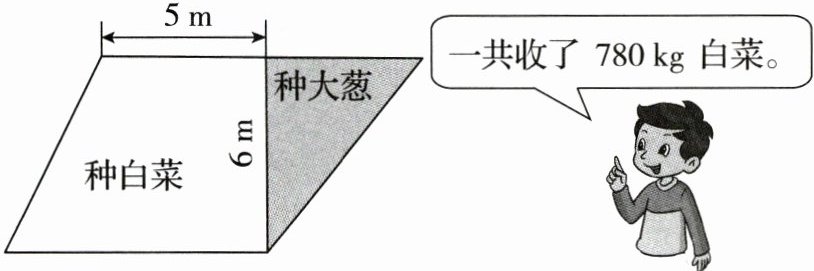 7. 如图,将一块面积是$48 m^{2}$的平行四边形菜地,分为直角三角形和直角梯形两块地,每平方米能收多少千克白菜?你是怎么得到这个答案的?请写出你的思考过程。